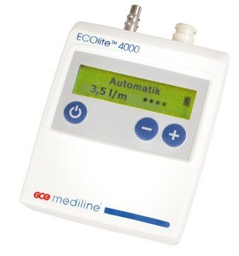 ECOLITE 4000 es un dispositivo electrónico economizador de gas, que permite una utilización agradable al paciente y una eficiente terapia de oxígeno a largo plazo. Con el ECOLITE 4000, el oxígeno es liberado exclusivamente en la fase de inspiración, permitiendo ahorros de hasta 10 veces comparado con la terapia de flujo de oxígeno continuo. El volumen de oxígeno necesario para una respiración es administrado durante el primer tercio del ciclo respiratorio que garantiza, tanto un tratamiento eficiente y óptimo como una corta exposición de la mucosa nasal al oxígeno médico. Una característica especial del ECOLITE® es el compacto regulador interno que permite al consumidor seleccionar el suministro de entrada de presión de entre 16 y 5 bar Opcionalmente disponemos de una versión de 16 bar adecuado para usar con recipientes de oxígeno líquido.