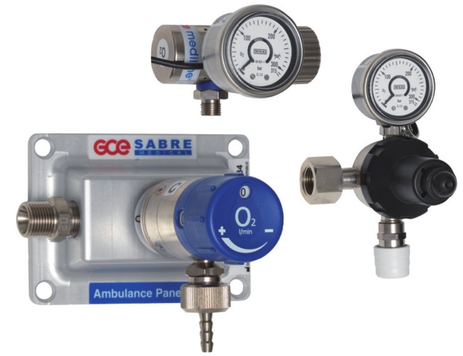 REGULADORES PARA AMBULANCIAS– MEDIREG II CON MANÓMETRO DE CONTACTO El MediReg es una nueva generación de regulador diseñado por el grupo GCE Se ha adaptado el MediReg con un manómetro de contacto adecuado para utilizar en ambulancias. El Medireg con manómetro de contacto es adecuado para ambulancias con necesidades de capacidad bajas o medianas GCE ofrece, con el regulador Medireg junto a los nuevos productos de paneles de ambulancia, un sistema completo para fabricantes y servicios de ambulancia REGULADORES PARA AMBULANCIAS – VARIMED CON MANÓMETRO DE CONTACTO El Varimed es un regulador de presión adecuado para ambulancias de carretera con una necesidad de capacidad media o alta. El Varimed es un regulador fiable y bien establecido en el mercado Con un manómetro de contacto integrado, GCE ofrece un amplio sistema de productos para el mercado de ambulancias