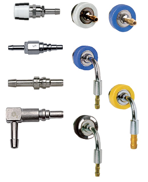 Tomas aéreas y conectores de diferentes estándares para la conexión de diferentes equipos a las tomas de pared o consolas medicinales