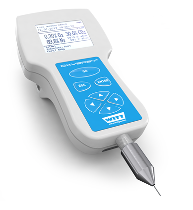 OXYBABY® - Analizador de gas portátil OXYBABY® O2/CO2 es el modelo indicado para el control de atmósferas modificadas (MAP) en envases de alimentos. El equipo ideal para mediciones móviles, rápidas y exactas junto a la maquina de envasado, en el almacén o en el laboratorio. Este pequeño equipo de gran capacidad se caracteriza por su sencillo manejo y su diseño ergonómico, así como por su corto tiempo de reacción y mínimo requerimiento de gas de análisis. La conexión USB u opcionalmente Bluetooth posibilitan una rápida y sencilla comunicación para la transmisión de datos o conexión a una impresora. Otras opciones son; un integrado lector de código de barras, software para la documentación de datos, una impresora de sobremesa, un soporte ajustable para análisis en latas y botellas. Opcional: Lector código de barras, conexión Bluetooth