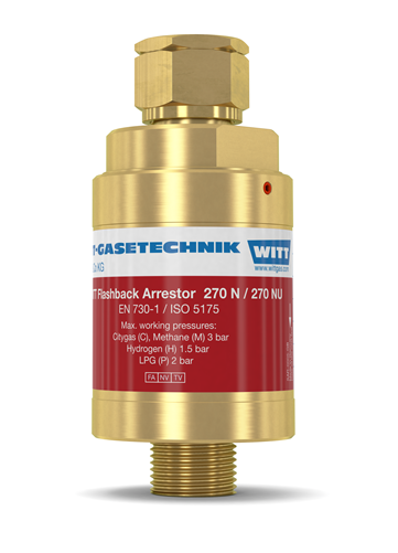 Los dispositivos de seguridad de Witt serie 270N/623N sirven contra el peligroso retroceso de flujo de gas y retrocesos de llama, pueden ser instalados en cilindros de gas, puntos de salida de tuberías, mangueras o