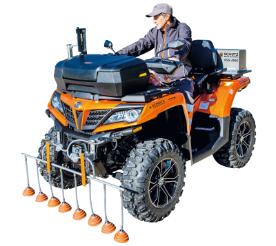 El nuevo sistema de medición "Scout VGS 4500" consta de varias sondas de medición montadas en la parte delantera del vehículo y se pueden colocar en la parte delantera de diferentes vehículos, como una camioneta, un quad o un automóvil. La celda de medición se instala en el interior del vehículo y se conecta a las sondas mediante una manguera de succión. Cualquier ajuste necesario de la distancia de la sonda a la superficie del suelo se puede hacer rápidamente en unos simples pasos, guardar toda la sonda frontal también es muy fácil.