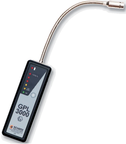 Señalización LED, 5 escalas (Verde OK, Amarillo > 10 ppm, rojo 1 vol) Rango de medición de 10 ppm hasta 25% LEL Para medición de metano, propano o GLP